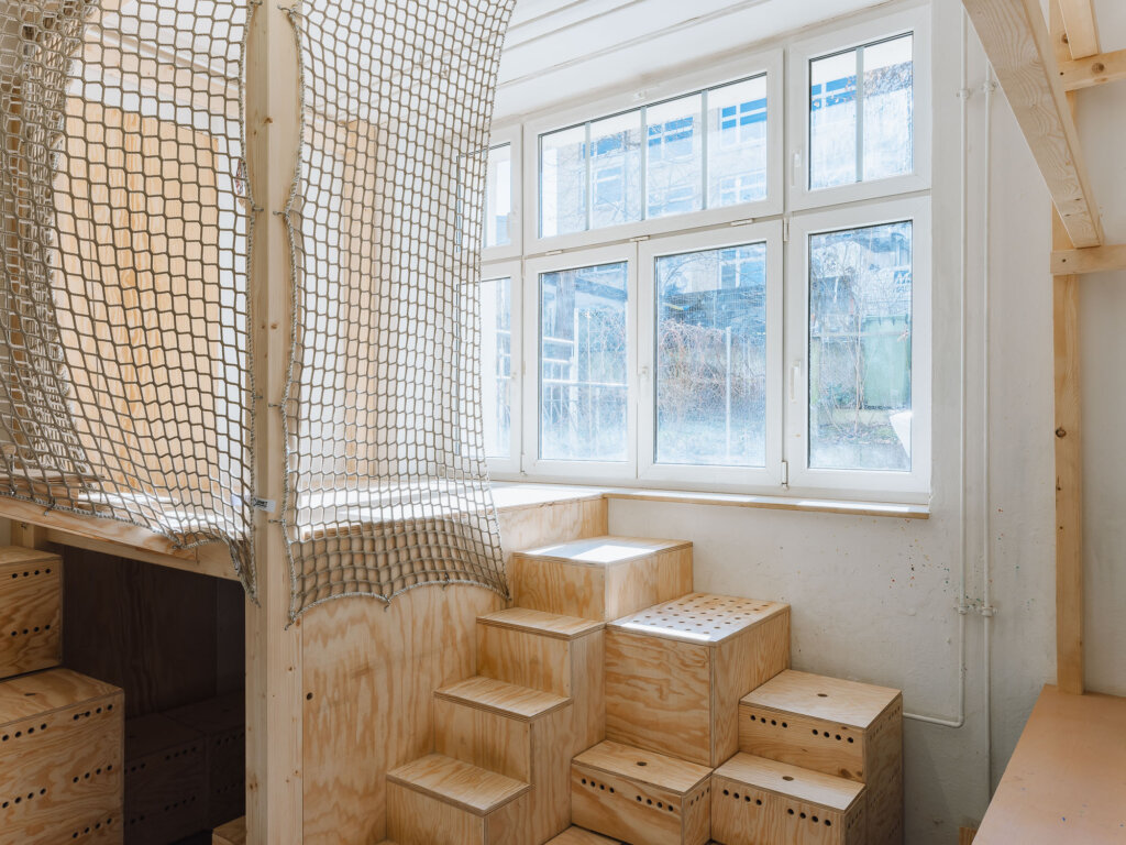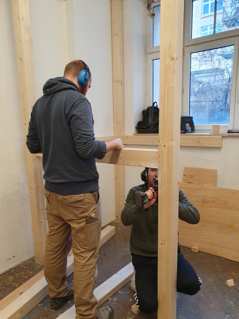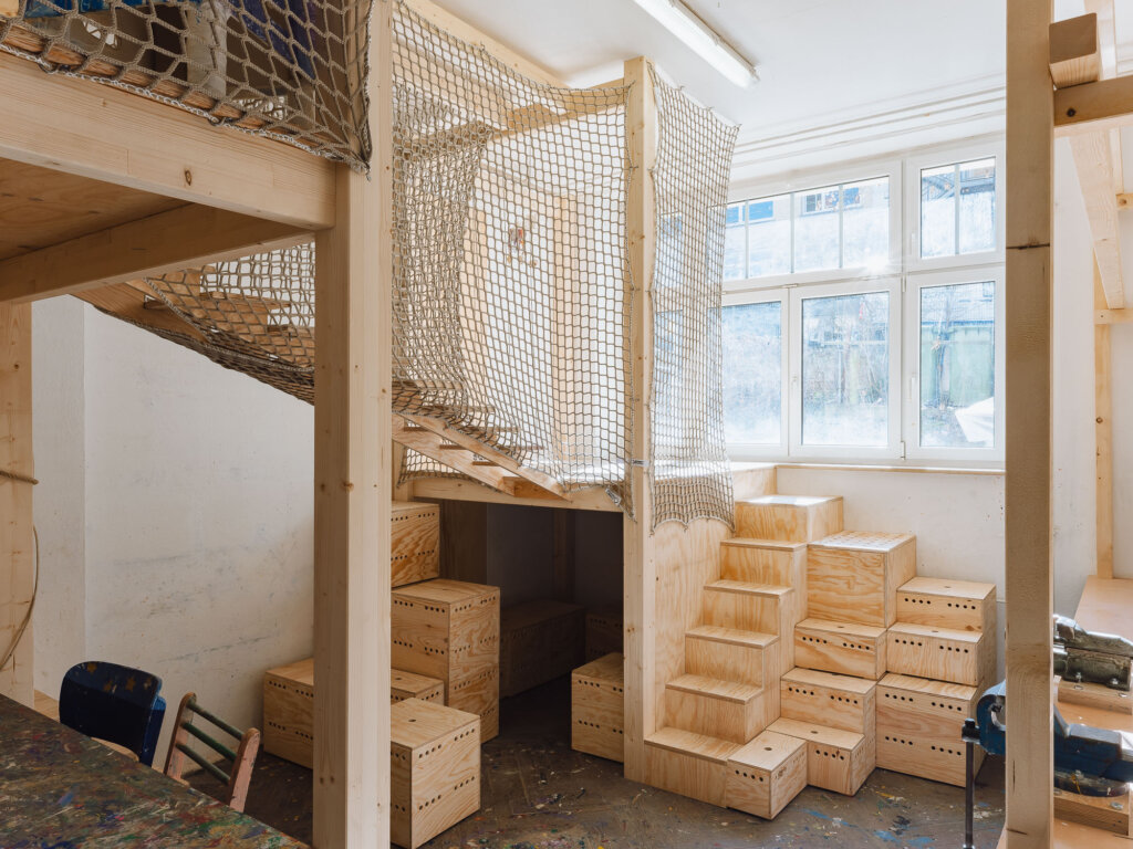Aufgrund von Platzmangel sollen die Räume der Kinderwerkstatt durch einen Umbau erweitert werden: In einem Arbeitsraum wurde eine zusätzliche Ebene mit mehreren „Gestaltungszellen“ geschaffen, um mehr Raum für kreative Experimente zu bieten. Der Umbau ist Anfang 2025 durch Studierende der ABK Stuttgart sowie das hauseigene Schreinerteam erfolgt.